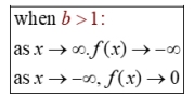 • if b > 1 (decreasing function), the right side of the graph approaches negative infinity and the left side approaches zero.