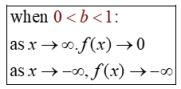 • if 0 < b < 1 (increasing function), the right side of the graph approaches zero and the left side approaches negative infinity.