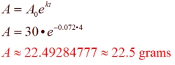 Example 3: A chemical sample with an initial mass of 30 grams is decaying at a continuous rate of 7.2% per year. How many grams, to the nearest tenth, will remain after 4 years?