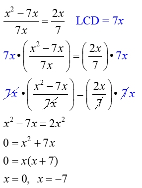 We also know that the value of x = 0 caused a zero denominator in the original equation.