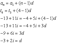 t15 = -4 + 5i + (13 - 1)(-3 + 2i)